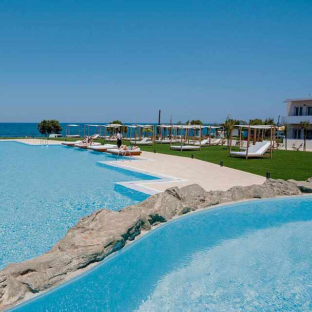 - Weitläufige Poollandschaft und privater Sandstrand für ultimative Erholung