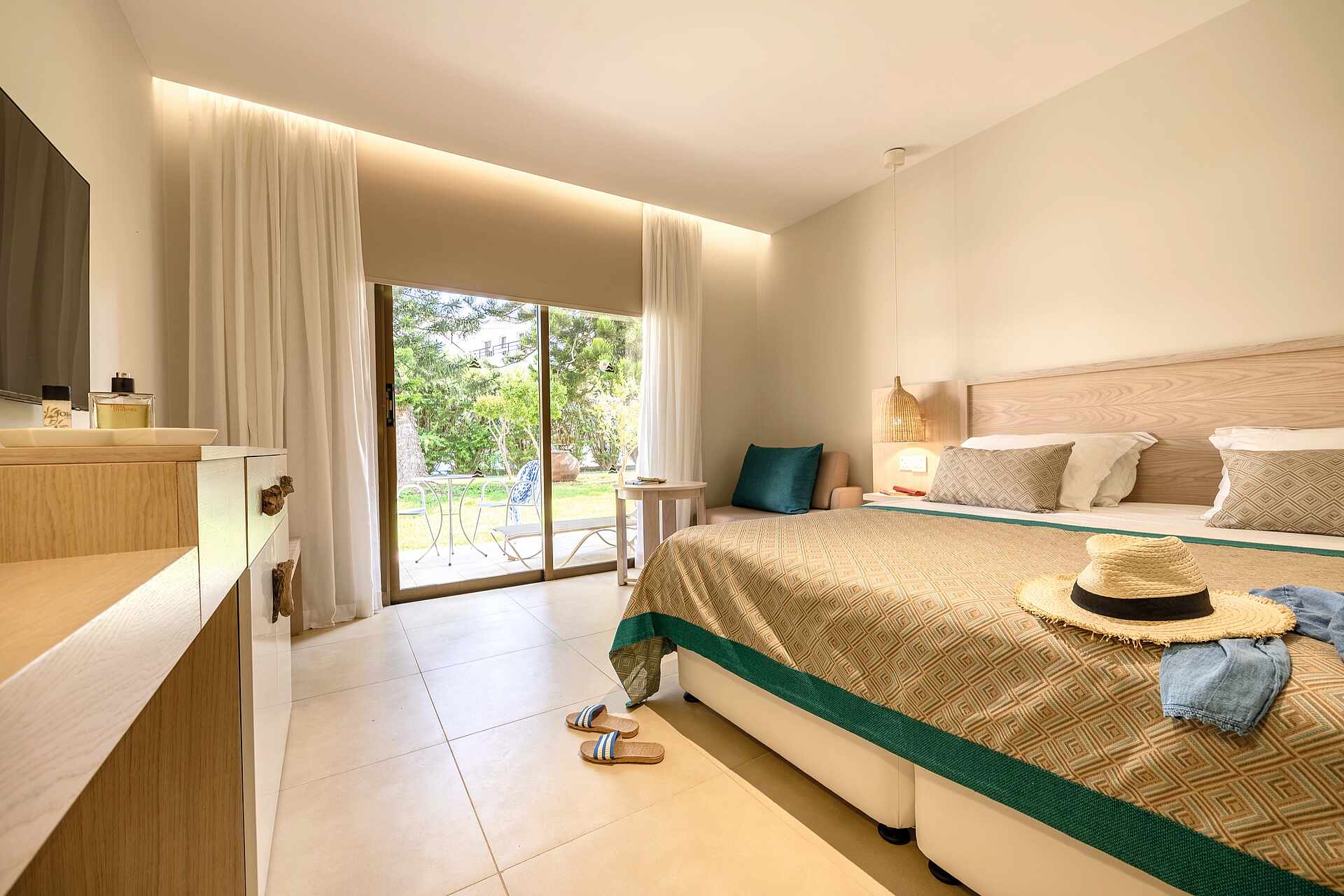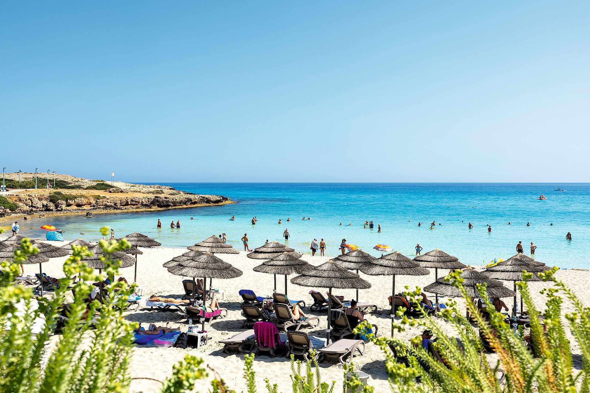 Strahlend türkisblaues Meer, so klar, dass man den Grund sehen kann und feiner weißer Sandstrand, soweit das Auge reicht: Nur eine Straße trennt den paradiesischen Nissi Beach vom TUI BLUE Atlantica Aeneas Resort – was für ein Glück für kleine und große Badeurlauber. Auch die lagunenartige Poollandschaft, Rutschen und Kinderbecken sorgen für Begeisterung.