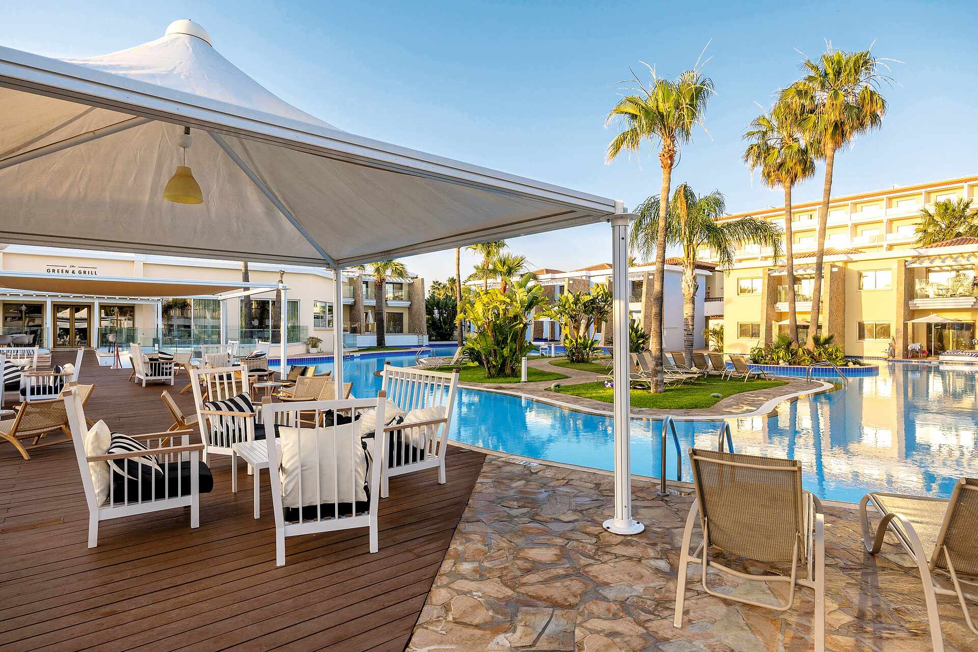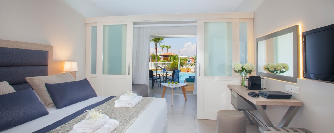 Das TUI BLUE Atlantica Aeneas Resort liegt an der Südostküste Zyperns wenige Kilometer von Agia Napa entfernt. Bei Eigenanreise geben Sie die Koordinaten 34.9901862 und 33.9665994 ins Navi ein.