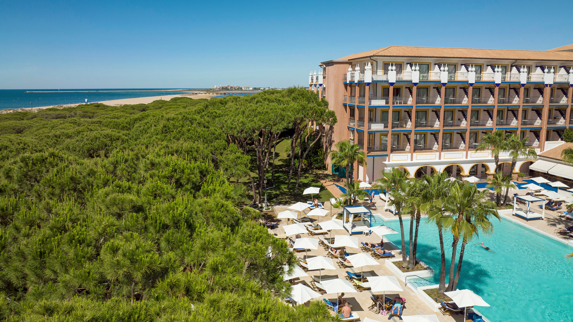 Direkt am feinsandigen Strand der Costa de la Luz liegt das stilvolle TUI BLUE Isla Cristina Palace und bietet Gästen ab 16 Jahren einen exklusiven Rückzugsort voller Ruhe und Genuss. Umgeben vom Atlantik und einem duftenden Pinienwald erleben Sie hier entspannte Urlaubstage in eleganter Atmosphäre. Der kilometerlange Sandstrand ist direkt vom Hotel aus erreichbar und lädt zu ausgedehnten Spaziergängen, Sonnenstunden und romantischen Momenten zu zweit ein.
