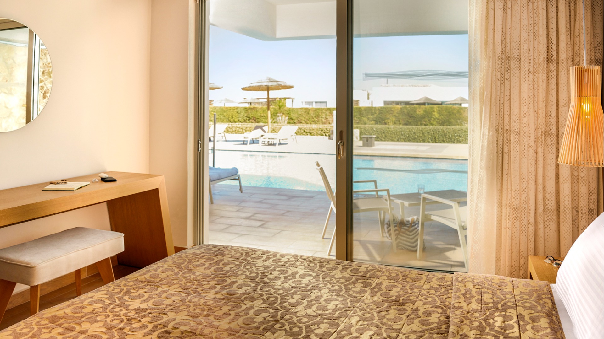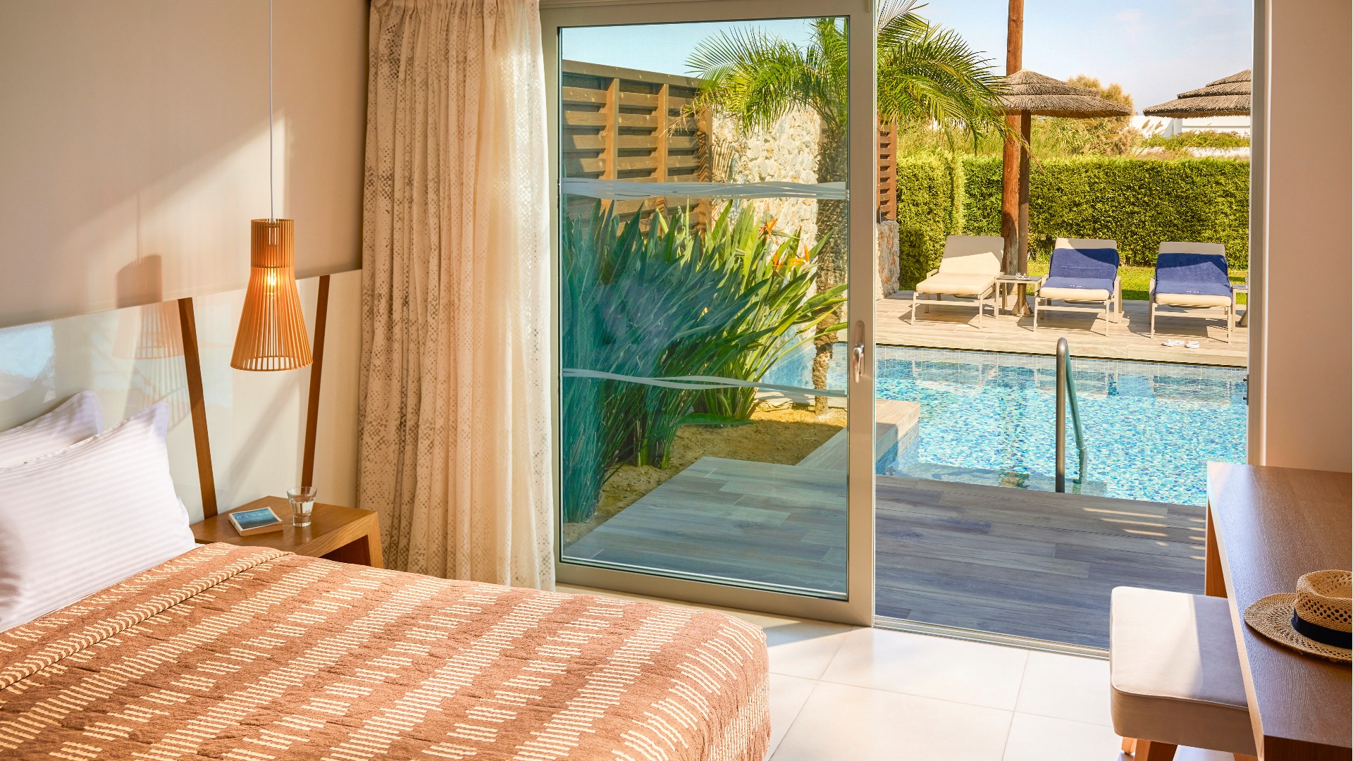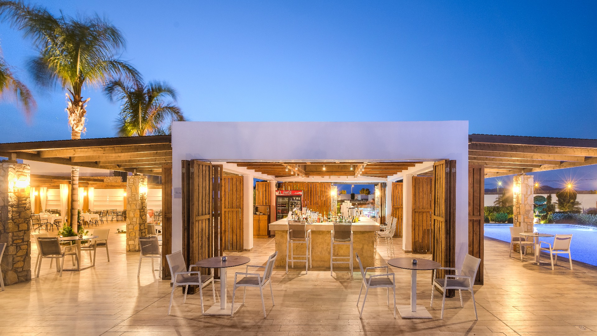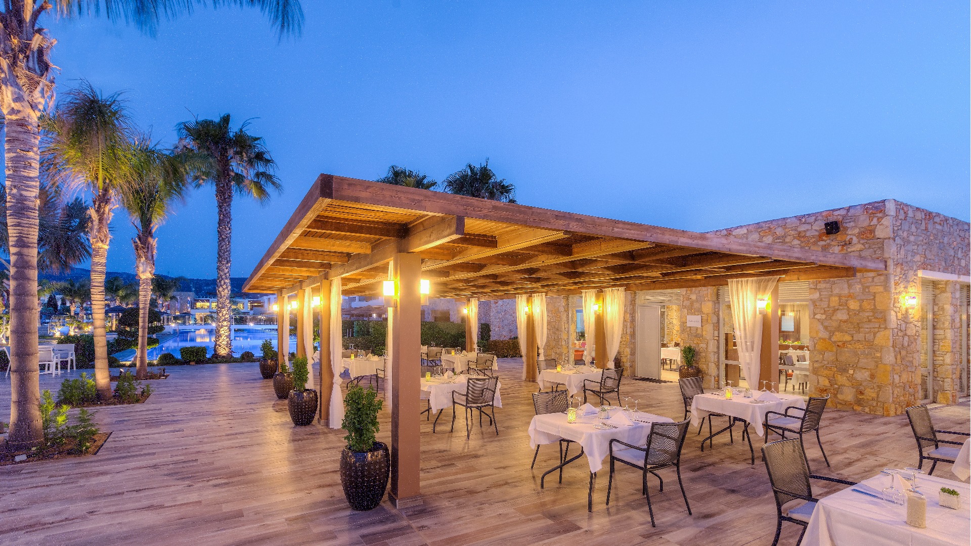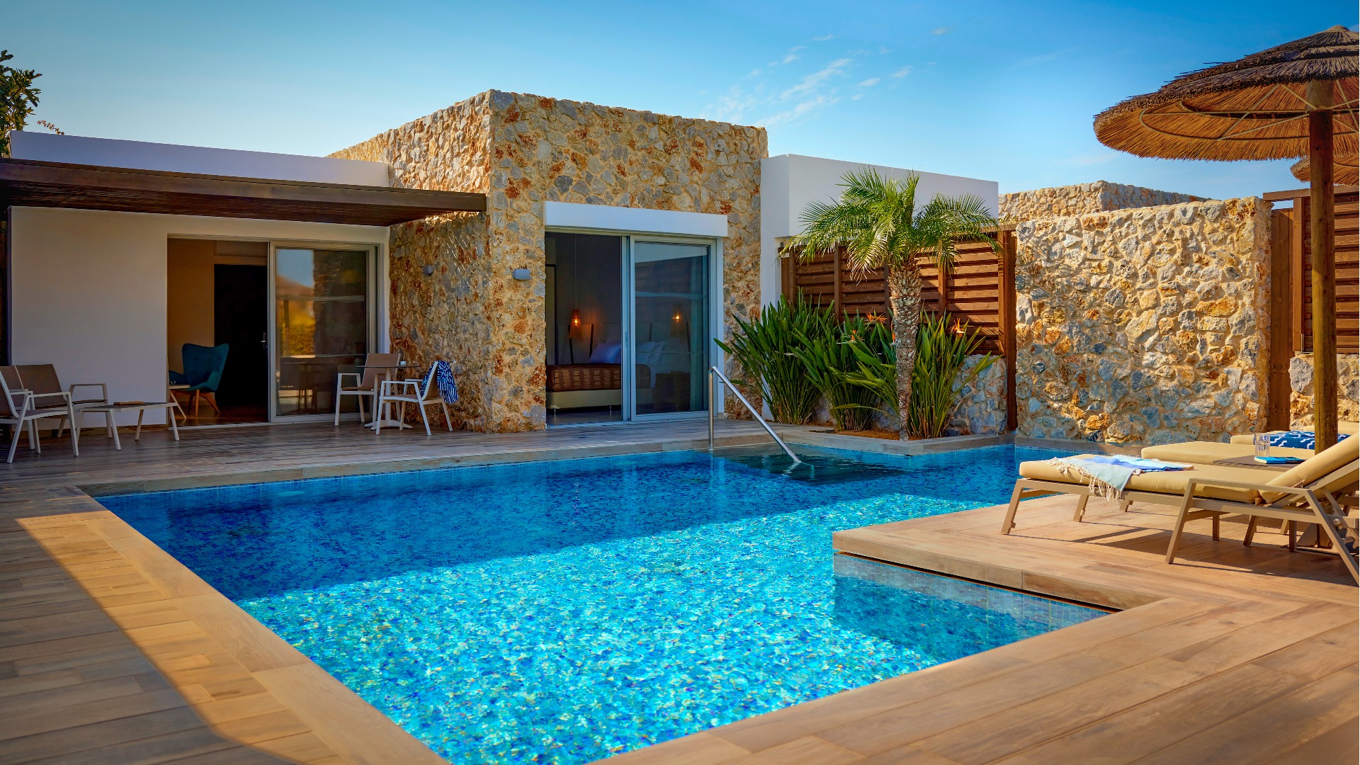 Eine gepflegte große Poollandschaft mit stylischen Unterkünften und das strahlend blaue Meer von Kos in direkter Sichtweite machen das TUI BLUE Palazzo Del Mare zu einem einzigartigen Erwachsenenhotel in Marmari. Die zeitgenössische Architektur kombiniert landestypische weiß gekalkte Fassaden mit Holz- und Steinelementen in einem erfrischenden Kontrast zum Blau des Wassers.