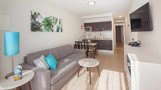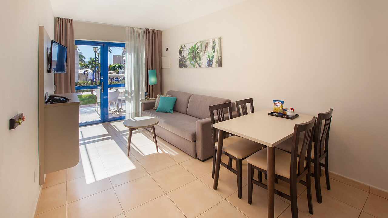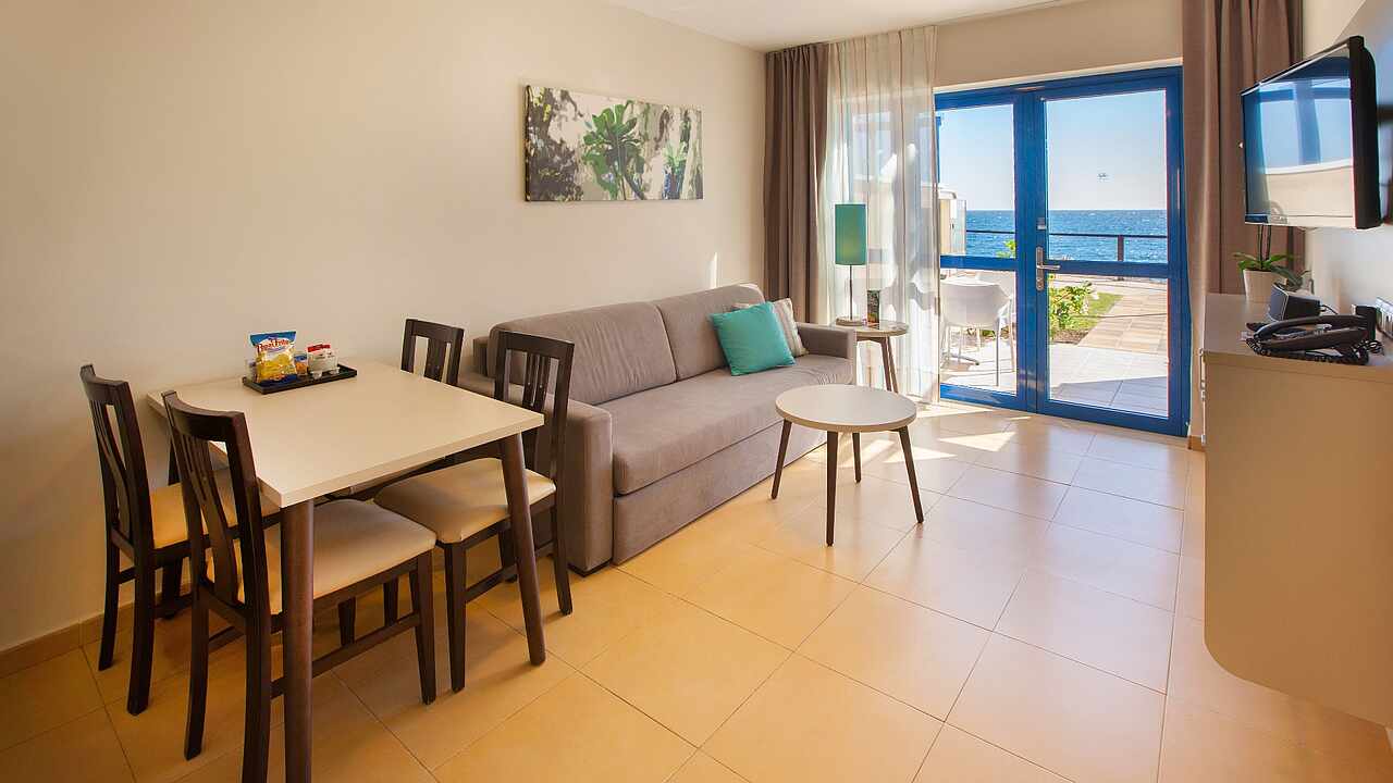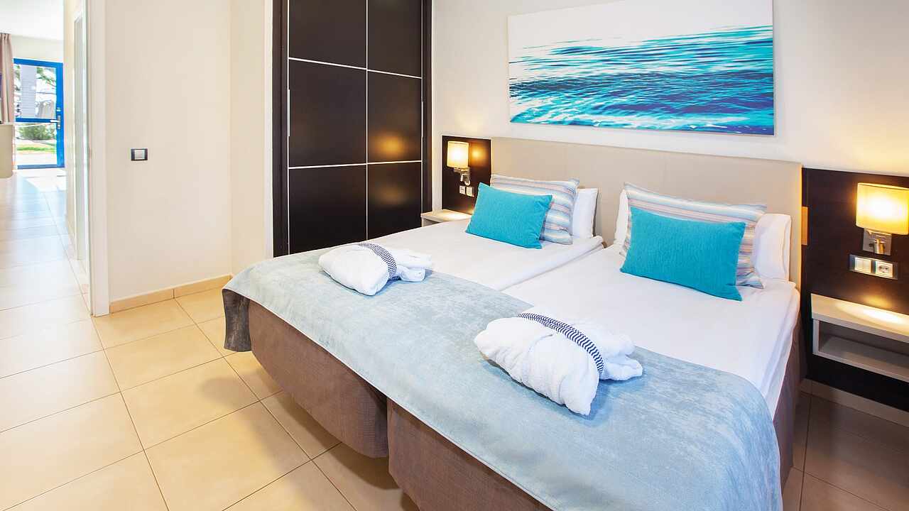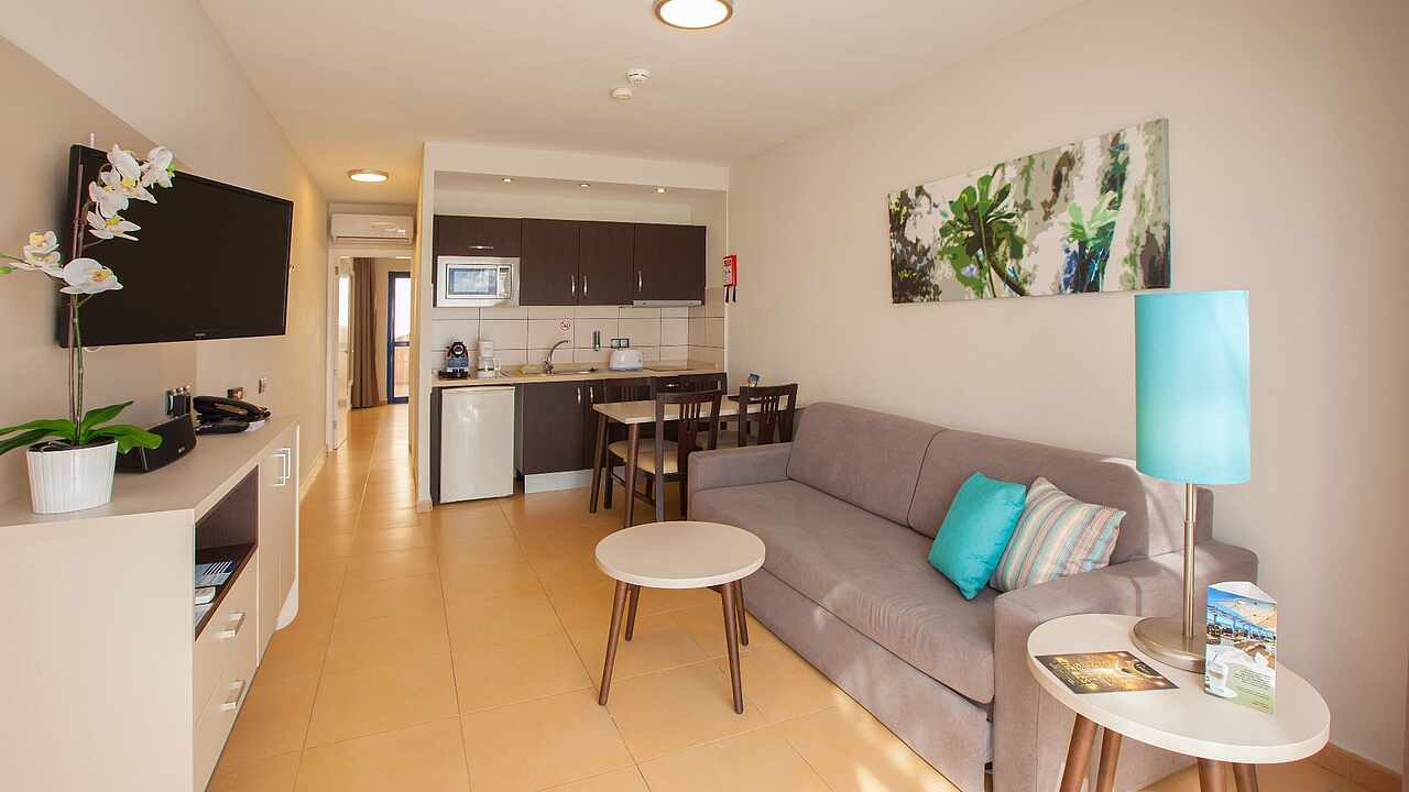 Verbringen Sie ein paar glückliche Urlaubstage mit Ihrer Familie im Familienhotel TUI BLUE Playa Feliz auf Gran Canaria. Sie wohnen in geräumigen, modern eingerichteten Apartments auf einer gepflegten, von Palmen umsäumten Anlage direkt am Meer. Vom Hotel aus sind Sie in wenigen Schritten an der Promenade und am naturbelassenen Strand Tarajalillo. Lassen Sie sich die Spezialitäten der kanarischen Küche und internationale Lieblingsgerichte in den Restaurants schmecken. Kids werden noch lange vom Kinderbuffet schwärmen. Hier wird alles dafür getan, damit die Familie eine unvergessliche Zeit miteinander verbringen kann. Die Poollandschaft und der zusätzliche Baby- und Kinderpool laden zum feucht-fröhlichen Badevergnügen ein.