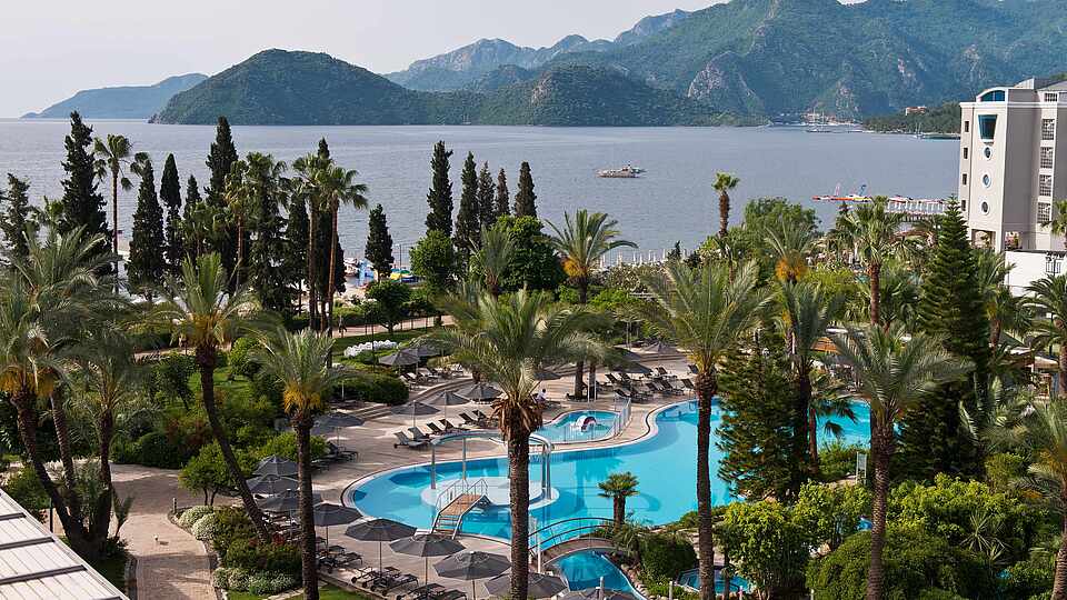 Indulge in the coastal splendor of TUI BLUE Grand Azur, TUI BLUE's 5-star hotel in Marmaris. Offering a perfect blend of luxurious accommodations, superb dining, and captivating sea views, this luxury resort promises an idyllic retreat on the Turkish Riviera.