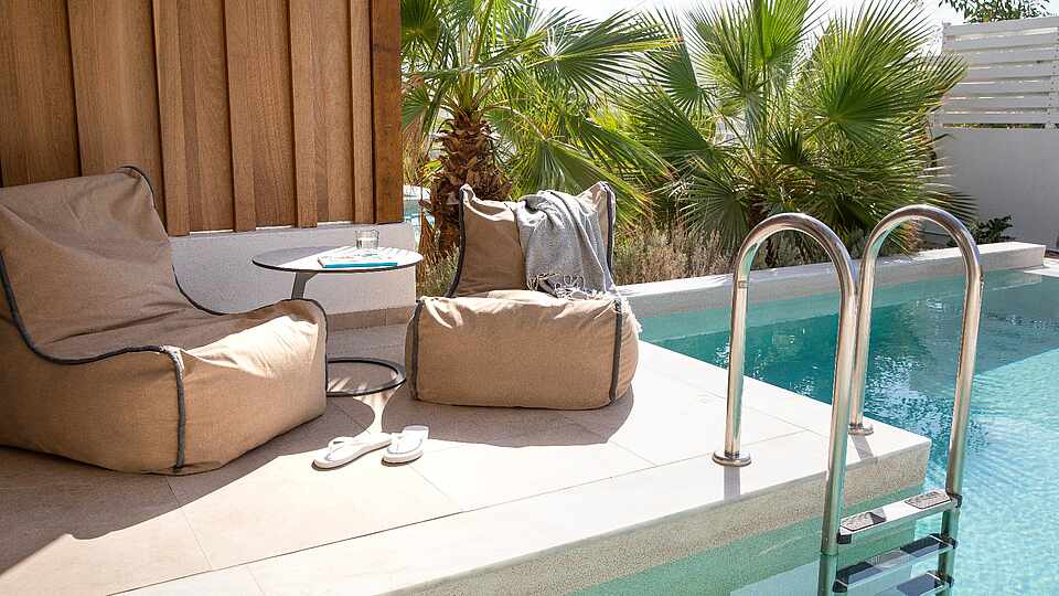Our rooms with private pools often come with additional amenities such as sun loungers. Each hotel offers different perks, so it's worth exploring the options available.