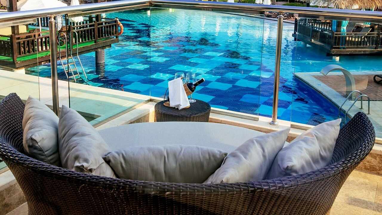 - 2 freshwater pools: large outdoor pool, indoor pool