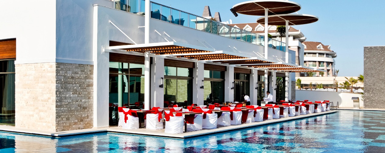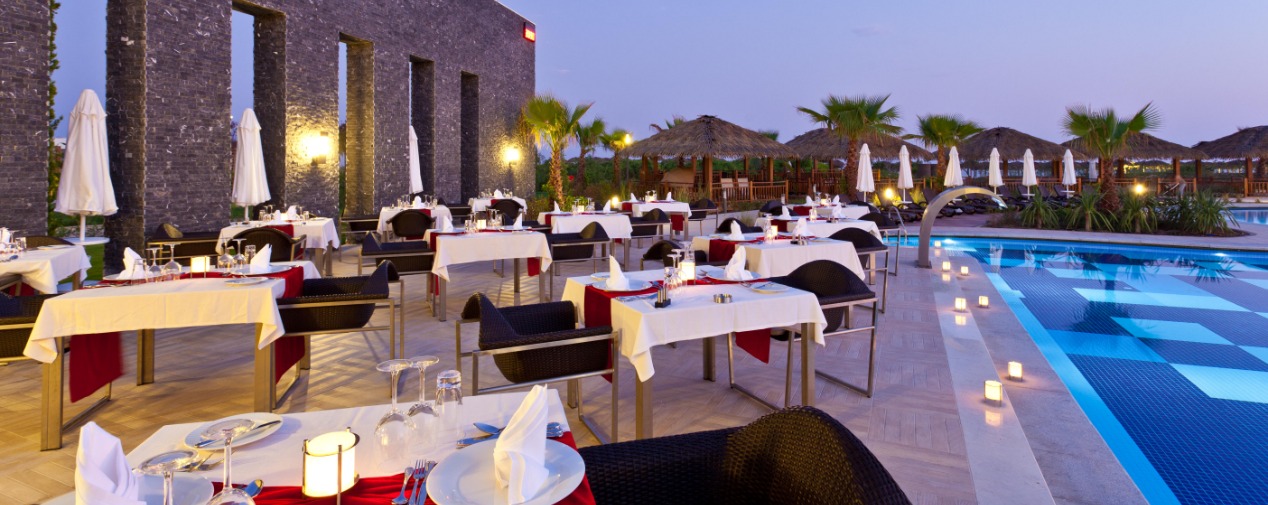 The hotel's Ottoman-inspired spa is a true oasis of wellness, where you can remain undisturbed from everyday life. Various fitness classes, water sports, culinary diversity, and sophisticated entertainment in the evening complete any holiday. With mouth-watering cuisine served daily at the restaurants, prepare to take a gourmet journey of the senses at TUI BLUE Belek.