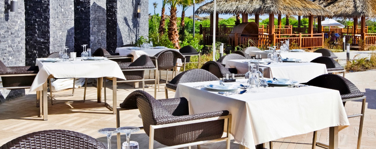 - A designated smoking area is clearly marked on the terrace of the main restaurant.