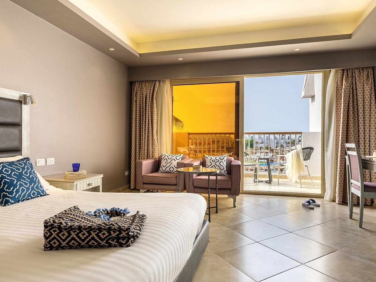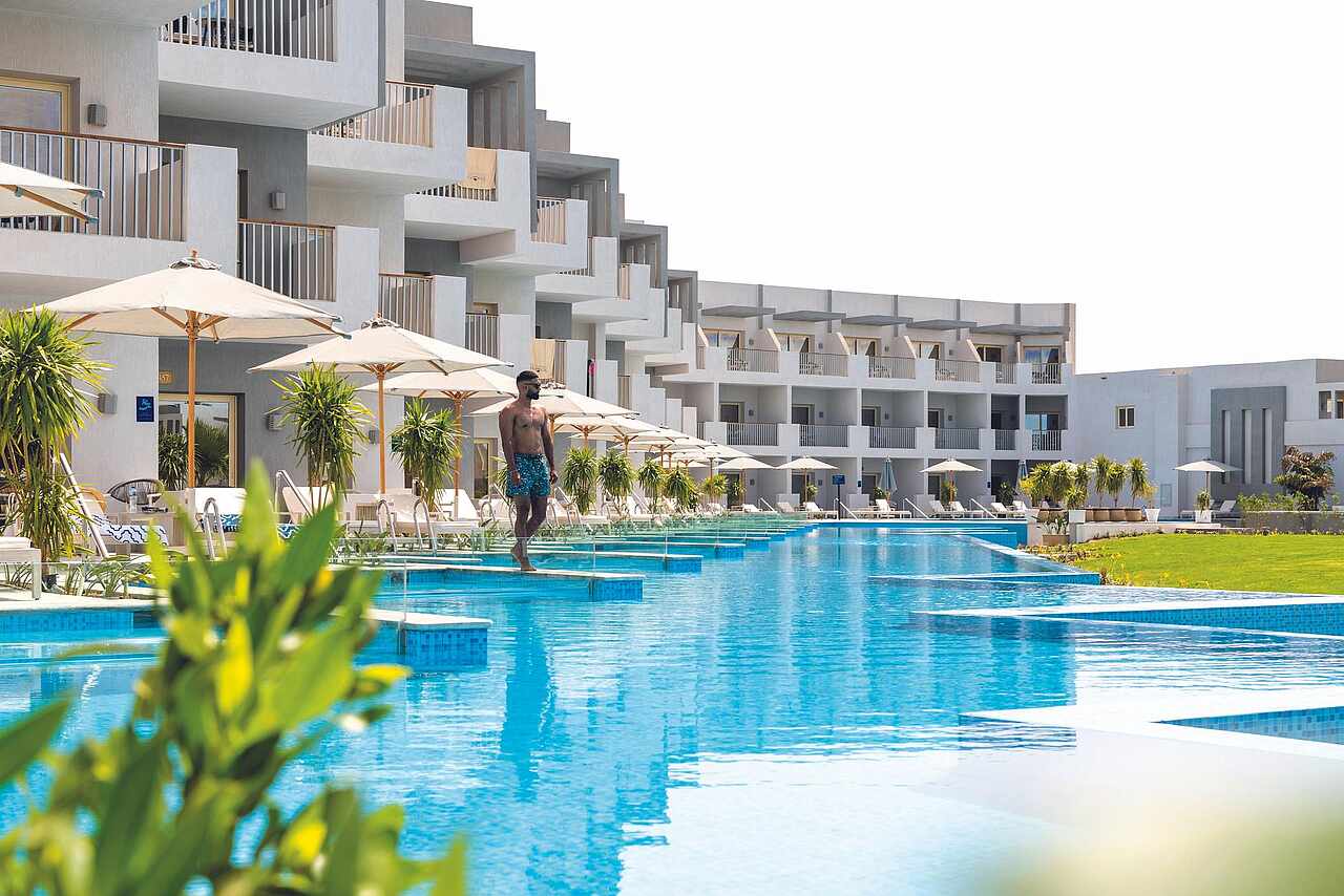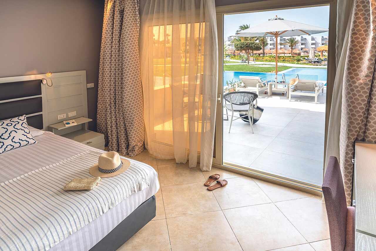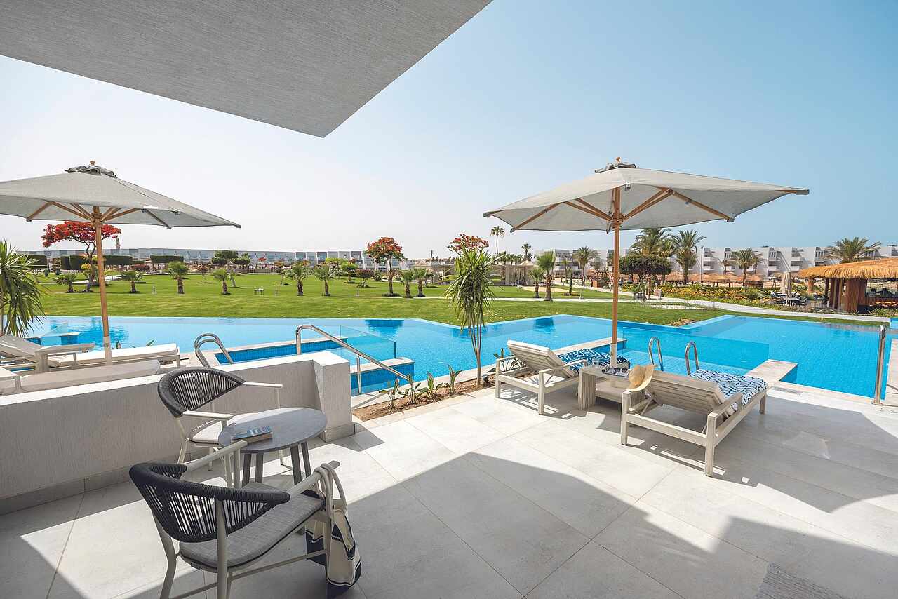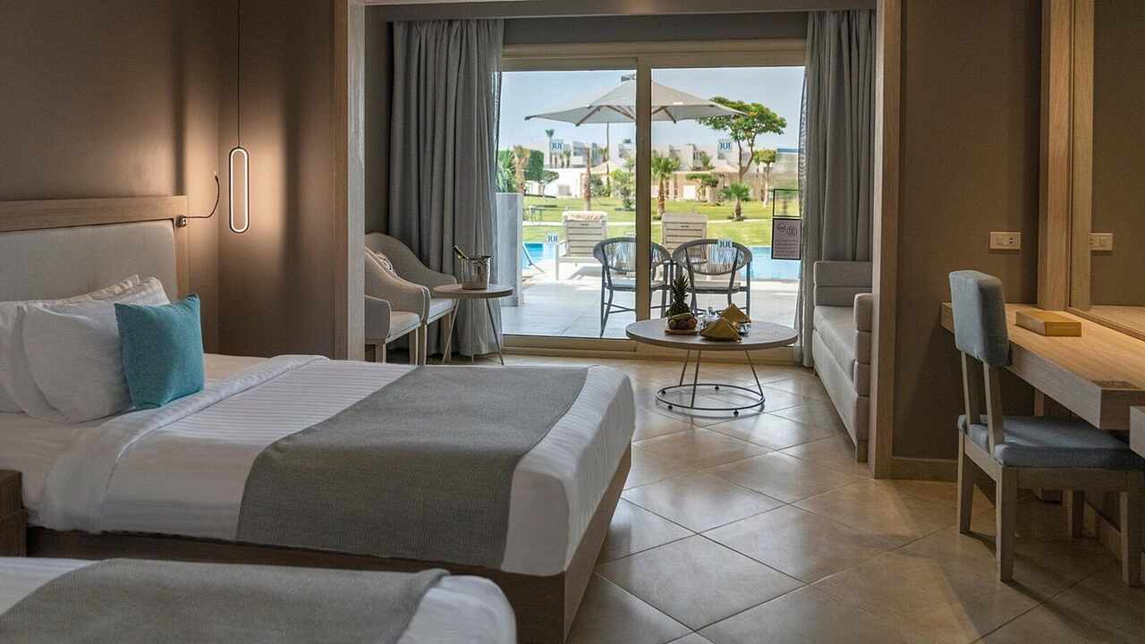 At TUI BLUE Crystal Bay, the elegance of modern design blends seamlessly with the raw beauty of Egypt’s Red Sea coast. Wake up to golden light streaming through palm-lined gardens, and step into a world where turquoise waters meet soft sands and every moment feels effortlessly serene. Whether you're lounging beneath Hurghada’s endless blue sky or strolling through lush pathways, the atmosphere whispers relaxation.