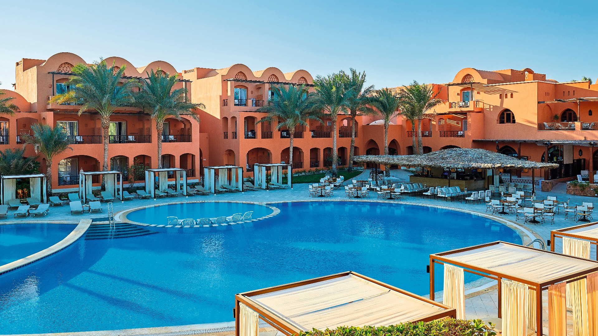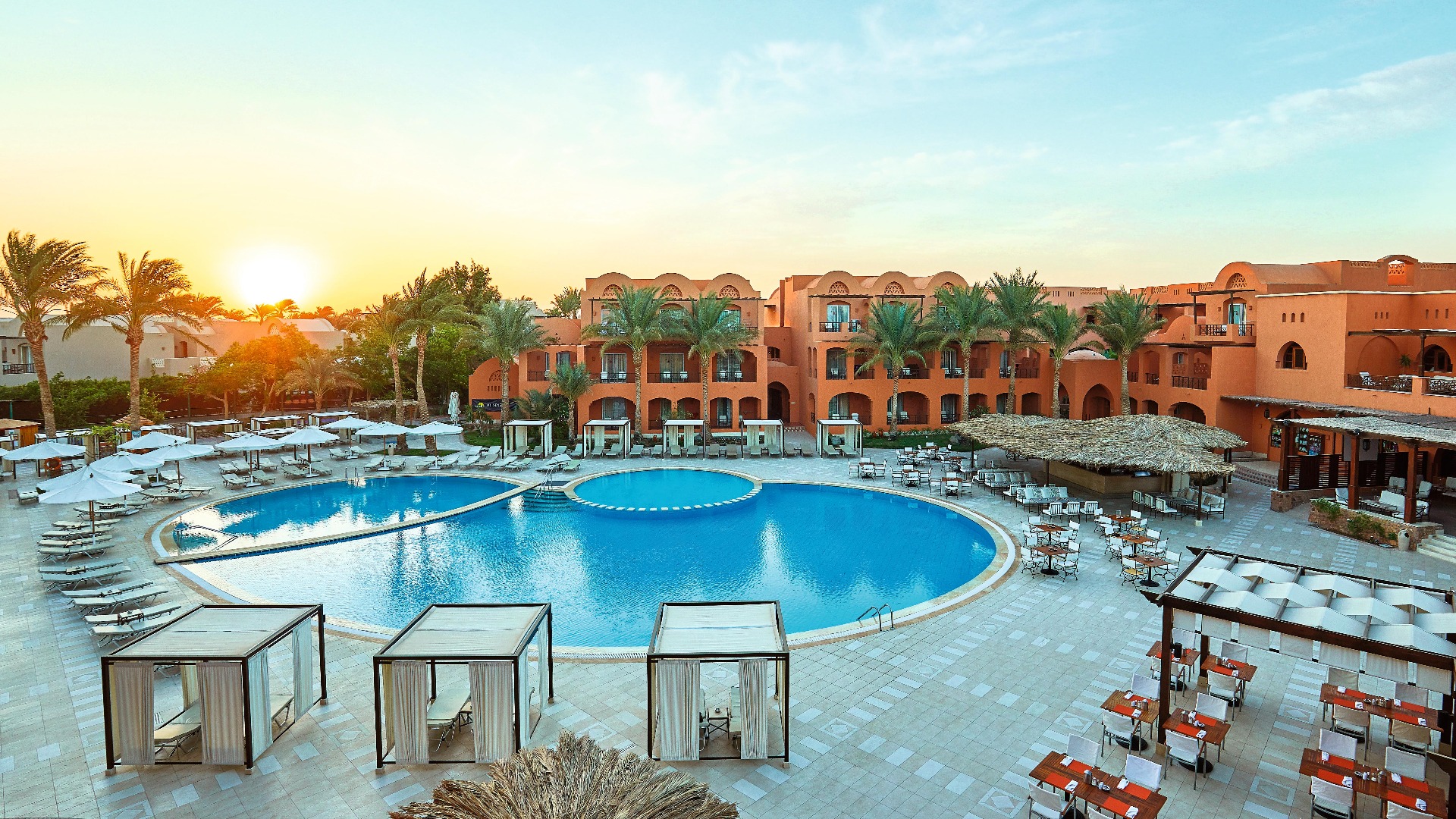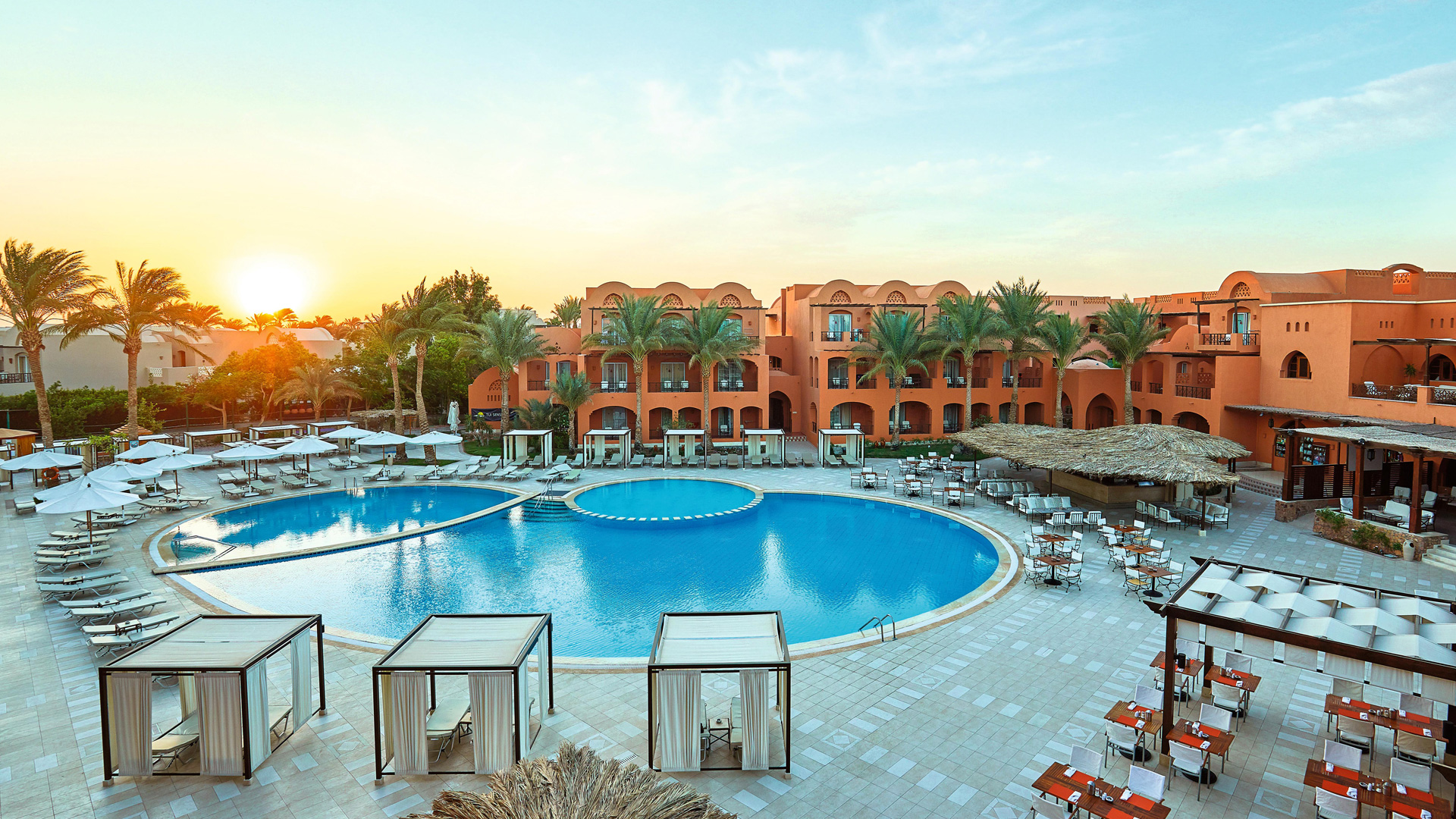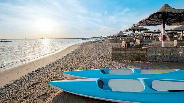 The adults-only hotel on the Red Sea is ideal for a relaxing holiday in a serene atmosphere. A paradise for snorkelling and diving awaits in Makadi Bay. The offshore coral reef is directly accessible through the hotel's own beach and is home to many different species of fish and corals. The TUI BLUE Makadi also has a lot to offer in terms of cuisine. Nine restaurants offer you the opportunity to feast to your heart's content. The all-inclusive programme not only includes refreshing drinks, but also gives you the opportunity to take part in a mixology course. The unobtrusive sports and entertainment programmes perfectly complete your holiday.
