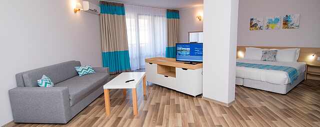 Look forward to a varied family holiday at TUI BLUE Nevis. Fitness, sports, entertainment, and a soothing spa — this is where every family member can get their money's worth. The nearby Sunny Beach invites you to swim. If you drive a few kilometres further, you can enjoy the Mediterranean landscape and experience the fantastic Bulgarian culture.