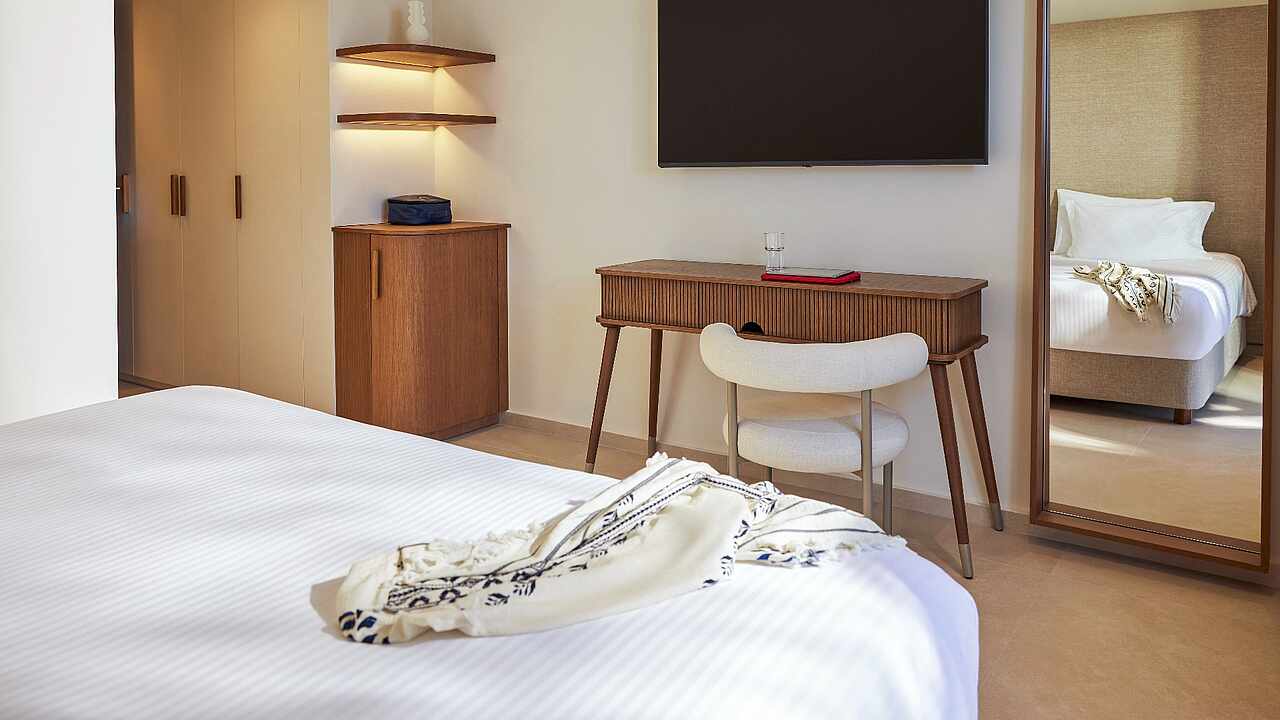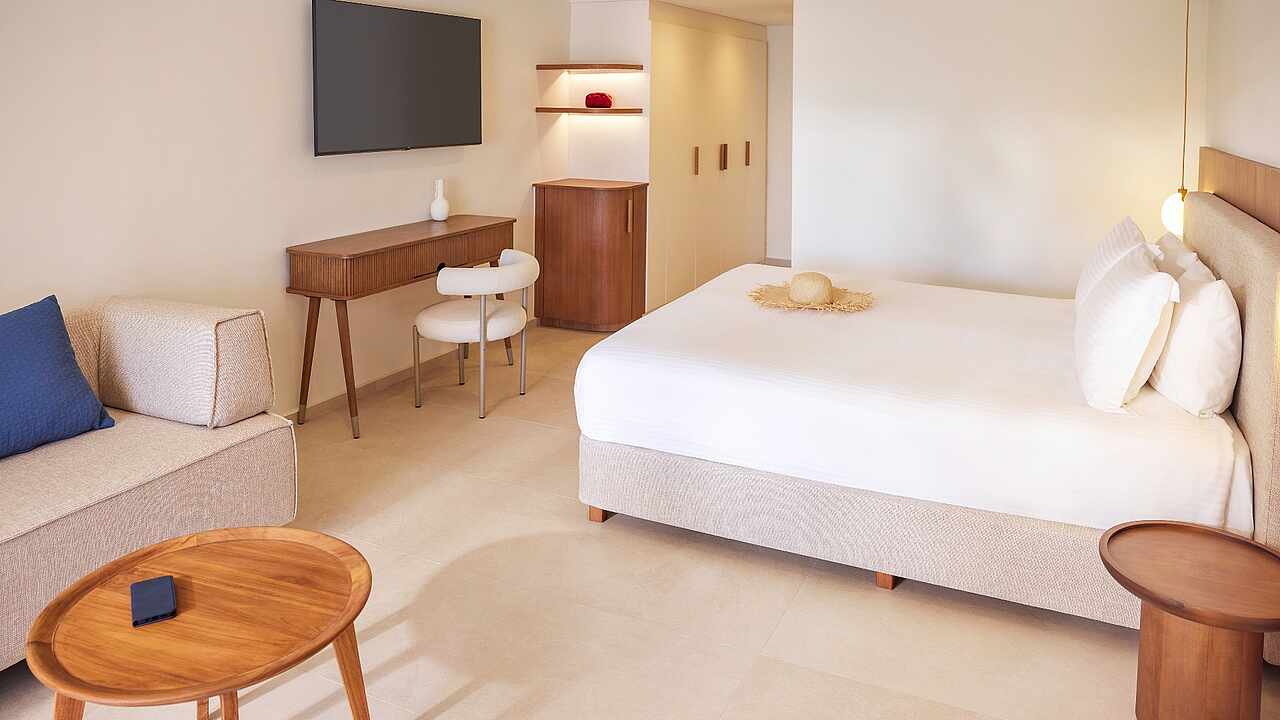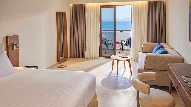 Fitness and wellness, hiking and water sports – your holiday at the TUI BLUE Oceanis Beach can be as versatile as you like. On the extensive grounds of your adults-only hotel, you'll find many sports possibilities. Relax in the beautifully landscaped spa area, or ride the waves of the nearby sea. Explore the picturesque landscapes and let yourself be swept away by the high culture of antiquity. At musical events and cocktail classes, you'll experience a wonderfully carefree time together.