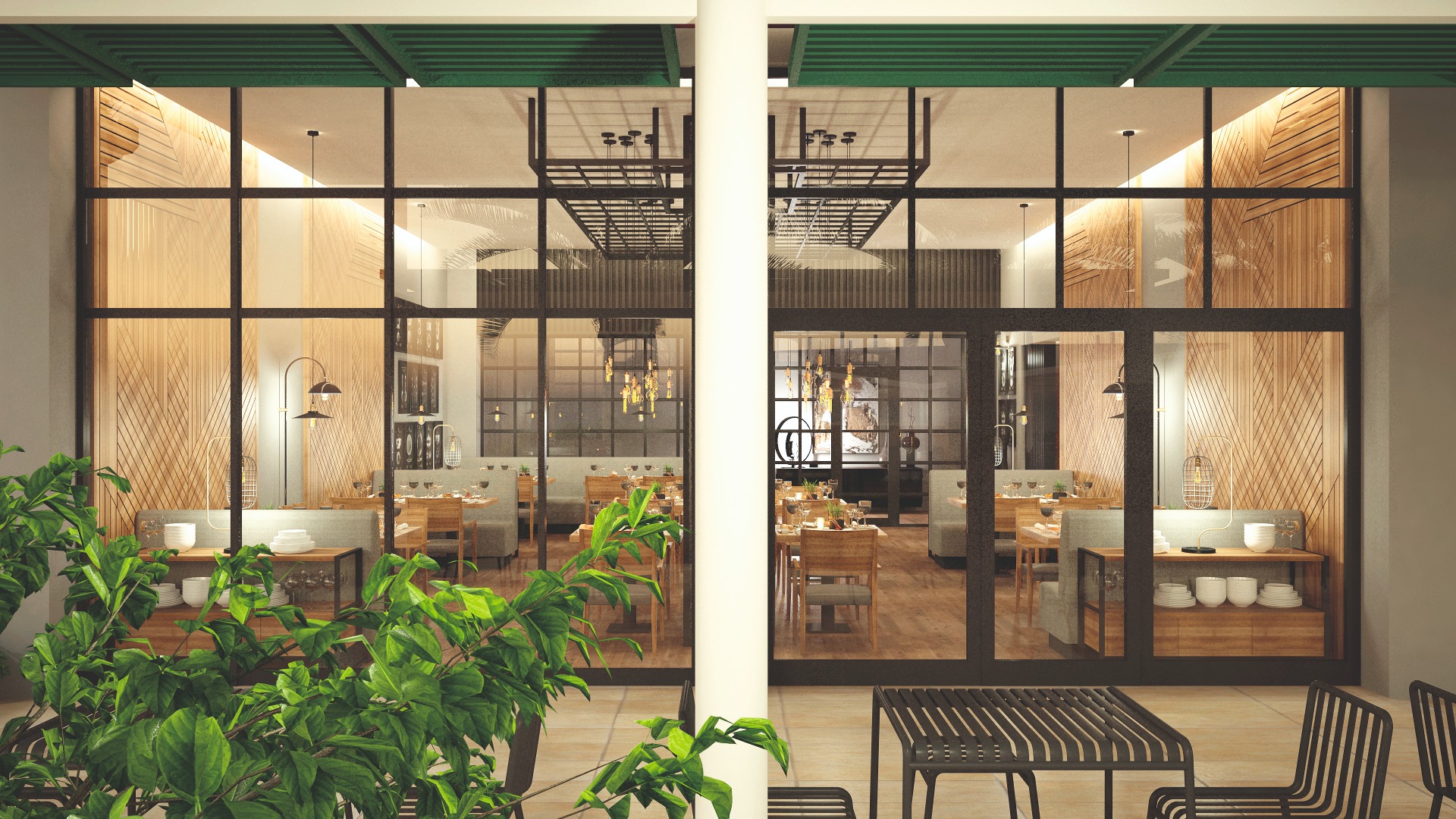 - Leafy courtyard