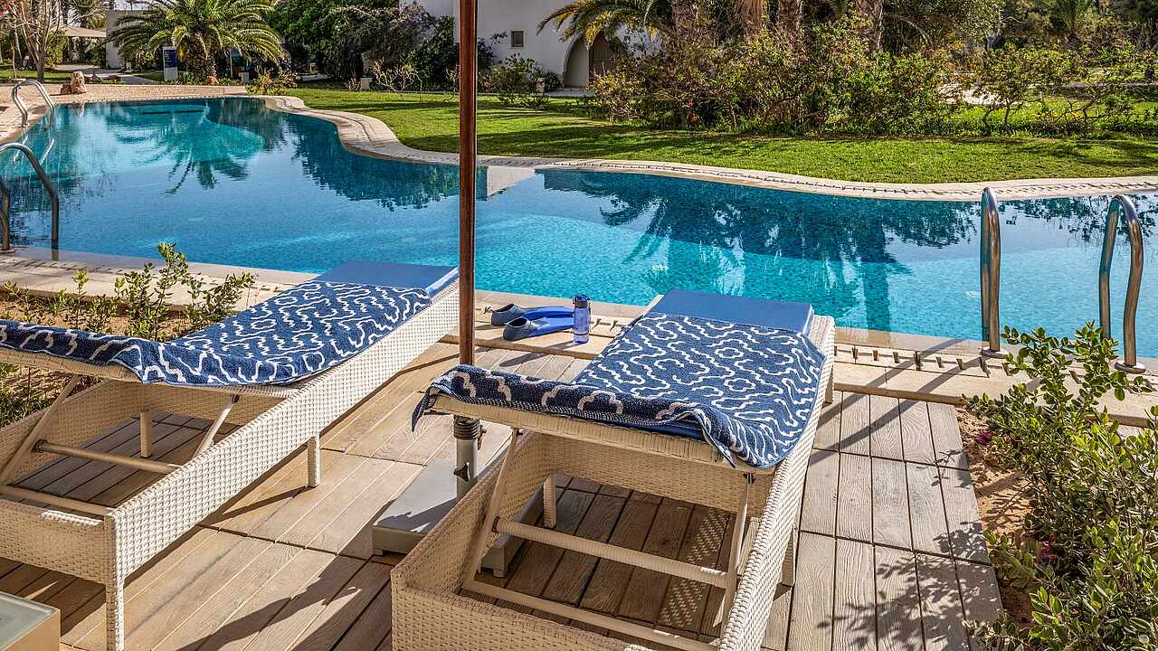- Kleedkamer, dagbedden, parasols, douche, ligbed/ligstoelen, ligstoelen, handdoeken, inbegrepen in all inclusive