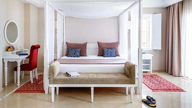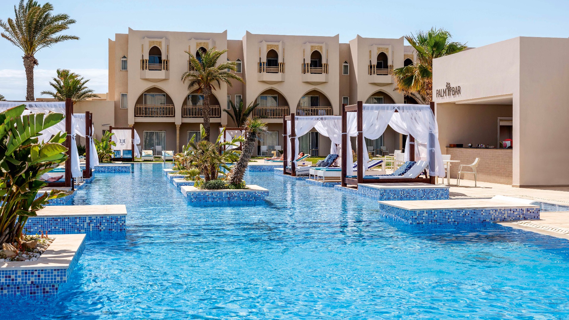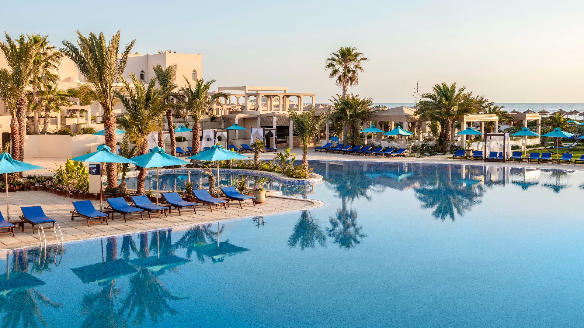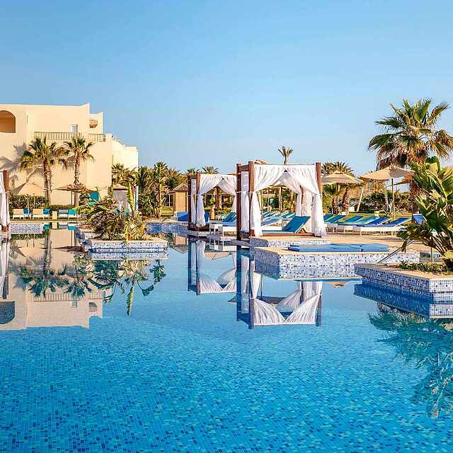 Bij TUI BLUE Palm Beach Palace op Djerba kun je een topvakantie vol ontspanning verwachten, alleen voor volwassenen. Geniet bij een van de twee zwembaden of op het zandstrand van de zon, die op Djerba 332 dagen per jaar schijnt. De magie van Noord-Afrika zie je terug in de stijlvolle kamers en de culinaire lekkernijen van het all-inclusive-aanbod van dit luxe 5-sterrenhotel. Laat je inspireren door de perfecte balans tussen de verwennende wellness in de BLUE® Spa, de sportieve uitdagingen met BLUEf!t® en de romantische sfeer in het goed onderhouden hotelcomplex. Ontdek de mooiste plekken op Djerba tijdens een van de authentieke excursies. TUI BLUE Palm Beach Palace belooft niets minder dan een onvergetelijke, ontspannende vakantie voor stellen.